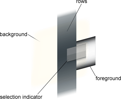- A foreground sprite which scissors the view to its bounds. It means that all the components (background, selection indicator, rows) which are out the foreground bounds are not displayed