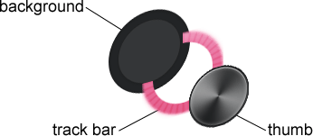 A CCControlPotentiometer is composed of several graphical elements as shown below:
